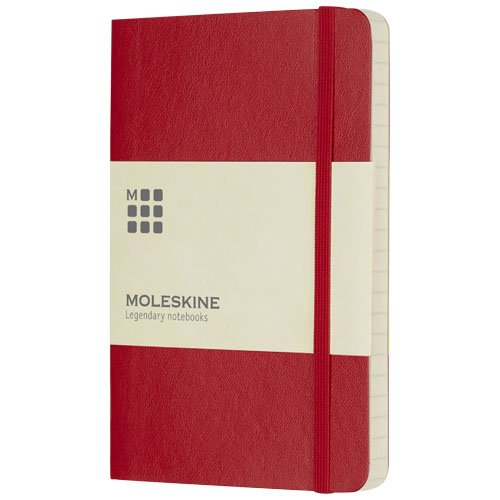 The Moleskine Classic soft cover notebook has a flexible cover in a range of bright colours. It has rounded corners, elasticated closure and ribbon bookmark. Contains 192 ivory-coloured ruled pages.