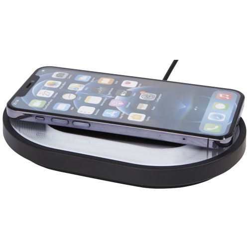 Fast charging wireless charging pad with RBG mood light effect and anti-slip mat. Wireless output is up to 15W, meaning that it’s almost 3 times faster than conventional 5W wireless chargers. Built-in Foreign Object Detection (FOD) safety feature to avoid risk of fire. Compatible with all Qi enabled devices (iPhone 8 or above and Android devices that support wireless charging). Input power: 5V/2A, 9V/2.67A. Output power: 5W/7.5W/10W/15W. LED light: 6 x 5050 LED, 1000 mcd. Includes a 100 cm TPE USB A to Type C 3A PD charging cable. Delivered in a standard gift box