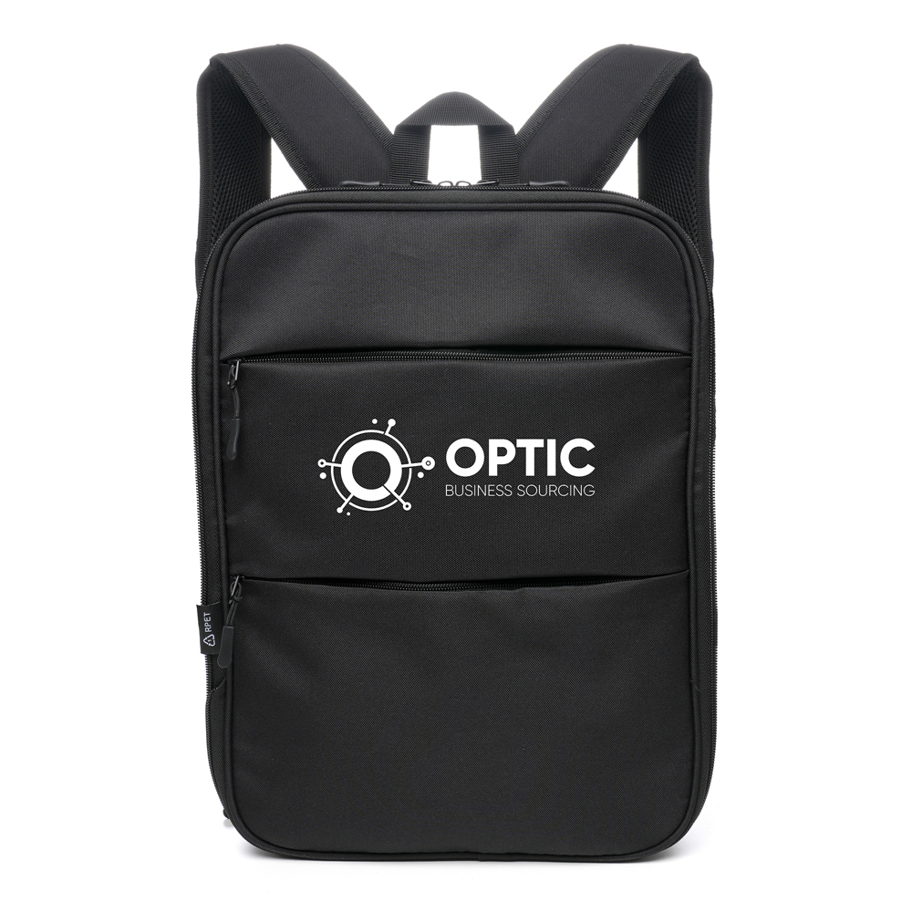 Made from 600D RPET fabric produced from recycled plastic bottles, this extendable backpack combines practicality with a smart, modern design. Compact for everyday use, it features an outer zip that runs around the body of the bag, simply unzip to expand the depth and create extra internal storage space when needed. Inside, a padded panel keeps laptops, tablets and documents protected, while two zipped front pockets and a side bottle holder help organise smaller items. The padded shoulder straps and breathable RPET back panel ensure comfort during daily commutes or travel. With a generous branding area and durable construction, this backpack makes an excellent promotional item for business giveaways, staff on-boarding or corporate travel. A versatile design that adapts to its contents while keeping your brand visible wherever it’s used.