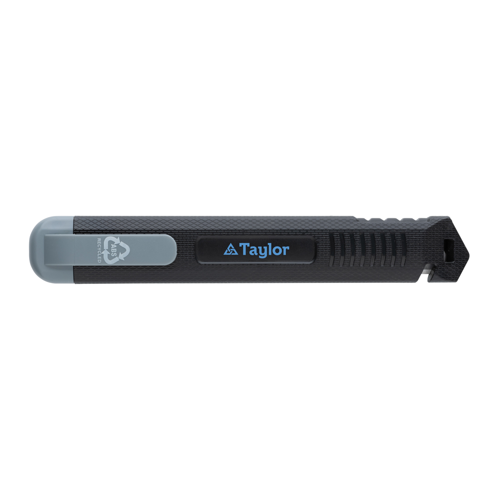 Refillable RCS certified recycled plastic snap-off knife made with RCS (Recycled Claim Standard) certified recycled ABS and stainless steel blade. Total recycled content: 78% based on total item weight. RCS certification ensures a completely certified supply chain of the recycled materials. This versatile knife features a snap-off blade design, allowing you to easily replace the SK4 blade when it becomes dull. Whether you need to cut through cardboard, plastic, or even thin sheets of metal, the snap-off knife is up to the task. The sharp, durable blade ensures that you’ll get clean, precise cuts every time. The knife is also incredibly easy to use. The comfortable handle provides a secure grip, allowing you to maintain complete control as you cut. Plus, the lightweight design makes it easy to carry with you wherever you go. Packed in FSC® mix kraft package.